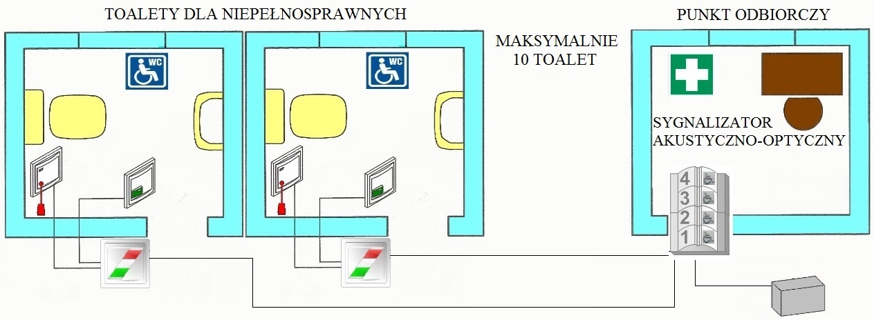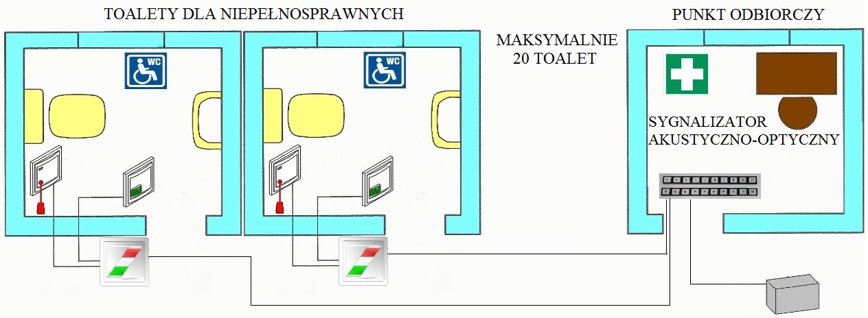 Sygnalizator optyczno-akustyczny w pomieszczeniu odbiorczym z pokrywa i ramką